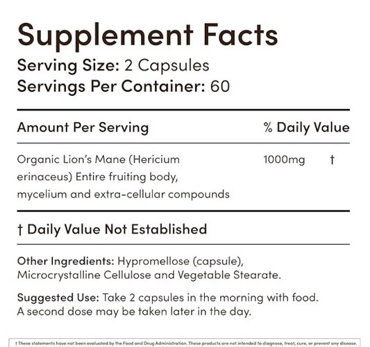 Double Wood - Cápsulas de suplemento de hongo melena de león, suministro de 2 meses (120 cápsulas), para apoyo cerebral y salud inmunológica