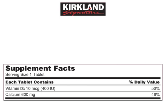 Kirkland Signature Calcio 600 mg con vitamina D3, 500 tabletas