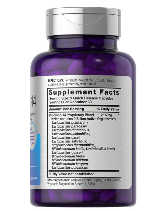 Horbaach Probiótico para mujeres y hombres | 60 cápsulas | 14 cepas con prebiótico | 50 mil millones de organismos activos | Suplemento sin OMG y sin gluten